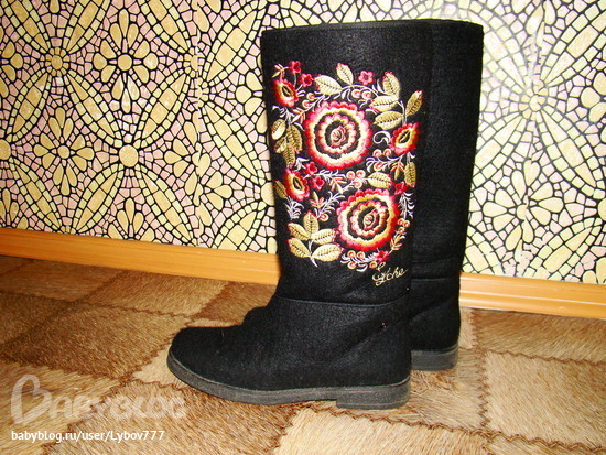 В этом году решила попробовать в валенках походить. В одном магазине совершенно случайно увидела свои валеночки и влюбилась!)))) Понравился и цвет, и оригинальная вышивка.