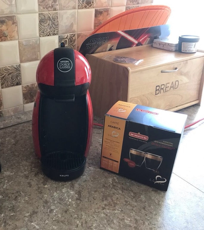 А у меня вот такая))) брала как раз на dimaestri.com ))) такая милаха, работает тихо, без шума. Попала на дигустацию в ТЦ, прям уговорили попробовать, так уговорили, что уже второй месяц пью капсулы от Di Maestri 😂. Подарочная Arabica уже закончилась, заказалановые капсулы Di Maestri стандарта Dolce Gusto - Cappuccio и Cioccolata, почитала отзывы, говорят вкусный) попробую отпишусь.