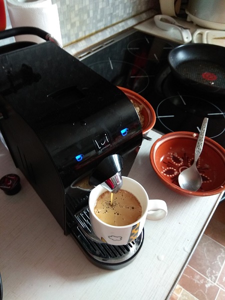 По совету Юли полазила на dimaestri.com. Покрутила мозги менеджерам своей дотошностью, в итоге заказала машинку Krups Oblo по скидке и две пачки с кофекапсулами Di Maestri Cortado и Cioccolata. Через день всё доставили, ещё и в качестве подарка получила пачку Di Maestri Intenso. Через 30 минут ковыряний, пили с мужем уже первый наш капсульный кофе. Вкуснятина, вкус намного приятнее чем в местных кофейнях, да и по деньгам намного дешевле выходит. Мне больше Cioccolata понравился, а Intenso уж очень крепкий, пусть муж пьёт!)) В общем довольна как слон.