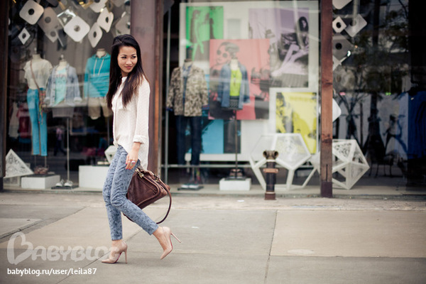 Мне понравилось как обыграны джинсы-клеш! А вот самый первый лук с сапогами и красной сумкой...)) Честно, но в моей провинции так одевается каждвя вторая, ибо у нас тут с утра девушки на шпильке, в мехах, эти обязательно заправленные скинни, и черный, черный. Понятно, что зачастую одежда низкого качества и нет вот этих нюансов красная сумка/красная подошва, но в целом похоже))