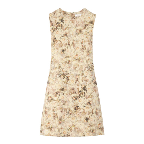 Итак, звезда надела платье из круизной коллекции Cloe. У него простой крой, и его украшает принт в цветочек. Цветовая гамма у платья очень нежная – в нем сочетаются бежевый, коричневый и оранжевый оттенки. Они идут Кирстен. К тому же, она поддержала их помадой в теплой гамме. Пальто Chloe на ней тоже светло-оранжевое. А вот аксессуары нейтральные – бежевые сумочка и туфли с черным носом – все от Chanel.