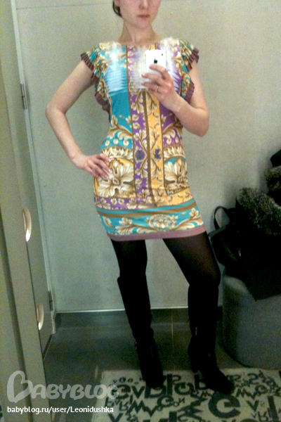 Фото из примерочной, поэтому черные колготки и сапоги не берем во внимание. Вообще планирую под него одеть замшевые туфли цвета румян, на высоком каблуке.