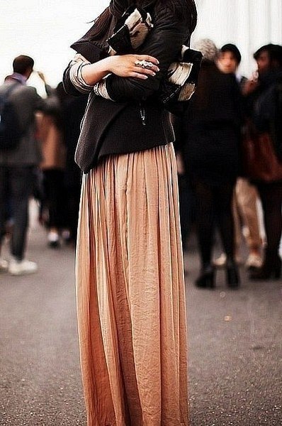 Как Ваша юбка? Носите? Купила короткую рыжую курточку как на Вашем фото. Очень хочу юбку макси только телесного цвета . А вот дальше стопор. Какие туфли и верх?