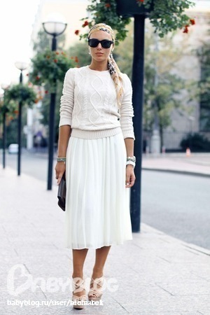 СЛУШАТЬ СЮДА)))) надо эту юбку носить именно с этими ботильонами!!! так модно))) кофточка может быть как на модели на ссылке, рубашка с воротничком (круглым или нет), майка даже, но главное - играйте с цветами, не надо черной вдовой наряждаться... тона: яркие цвета, белый, пастельные, БЕЖ - вообще верх мастерства))