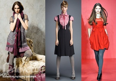 Весьма интересен образ, где колготки того же цвета, что и основной наряд, но более теплого или холодного оттенка. Такой комплект будет элегантен, довольно сдержан и очень изыскан.