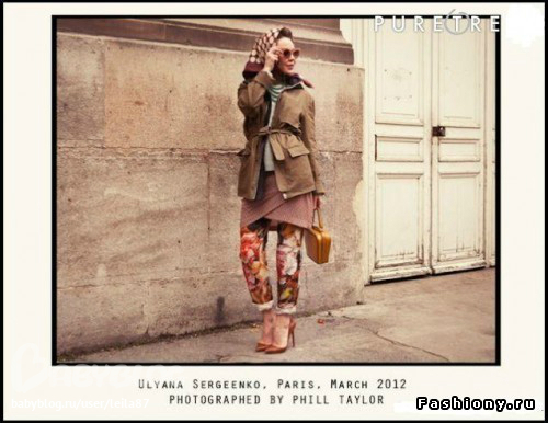 Ее называют новой иконой русского стиля. Ульяна - обладательница прекрасных пухлых губ и фарфоровой кожи. В прессе об Ульяне пишут: ««Загадочная русская матрешка Ульяна Сергеенко привлекает внимание немыслимым сочетанием традиционных стилей, силуэтами 1950-х и красивой жизнью». Что характеризует стиль Ульяны: красная помада, длина-миди, макси и супер-макси, неординарные головные уборы, различная фактура верхней одежды, русские узоры, цветочный принт.