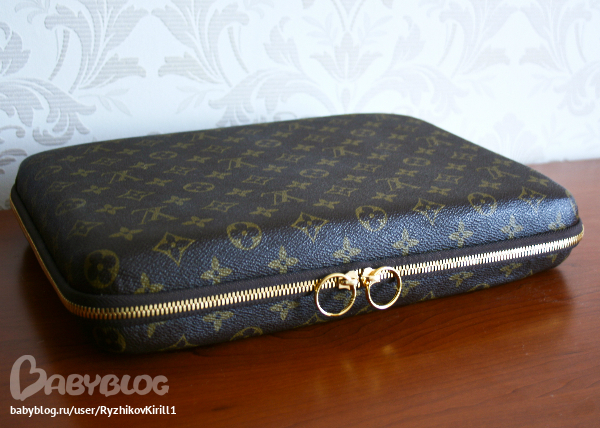 диагональ 39 см. внутри бежевая замша с гравировкой. очень стильный аксессуар+ удобное и безопасное хранение ноута, документов.