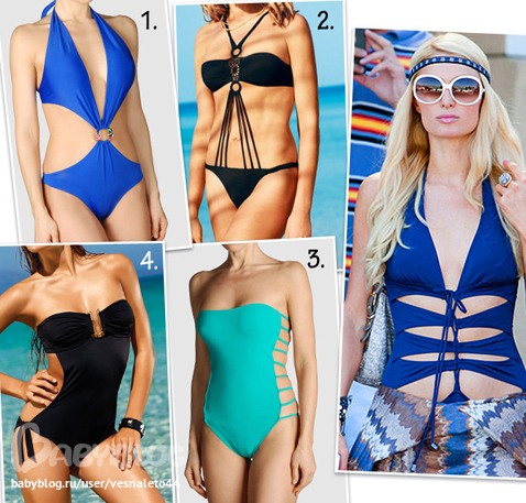 В сплошном купальнике с эффектными разрезами вы едва ли получите идеальный загар. В такой модели можно отправляться на вечеринку у бассейна или на яхте. Кстати, отнеситесь серьезно к выбору купальника. Расположенные по бокам разрезы визуально сделают вашу фигуру похожей на «песочные часы», а горизонтальные прорези на животе, как у Пэрис Хилтон, могут «убрать» талию