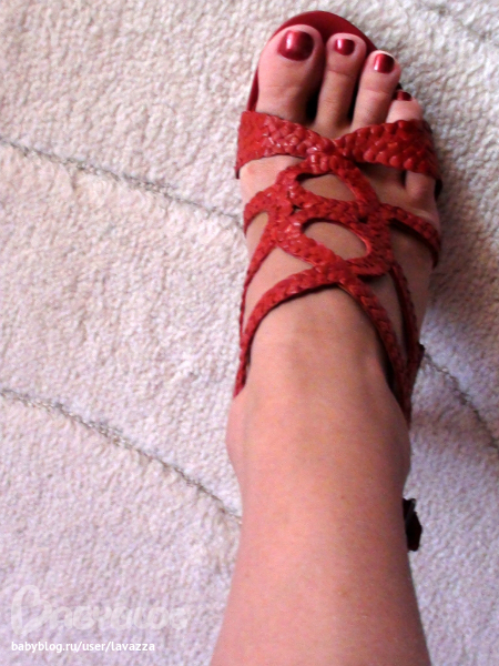 Напоследок решила зайти в один маг, в котором я давно не отоваривалась и вот что мне приглинулось -красные босоножки!!! Никогда такой цвет не носила, но решила что опредленно его нужно иметь в гарберобе!!! Хватастаюсь!!!! Очень легкие и купила со скидкой, что ОЧЕНЬ радует. Зацените!!!