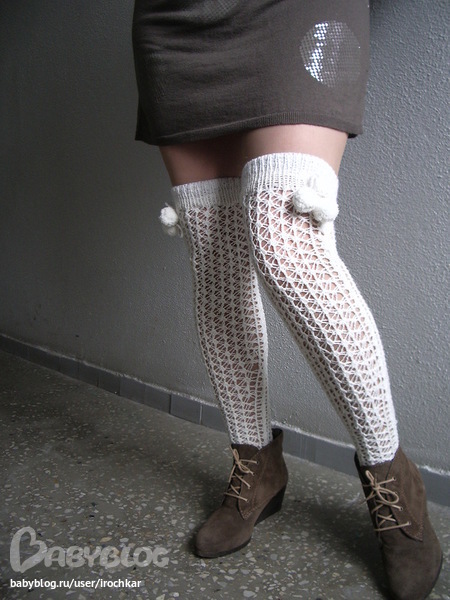 я такие ношу с ночнушкой дома только серые .. у меня приталенная касвая ночнушка чуть выше колен и таке гольфики .. самой ноги 2 см остается классно дома и тепло... на улицу не ходила так давно.... в 16-ть черные носила с мини но ноги были тоненкими