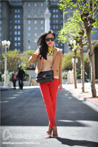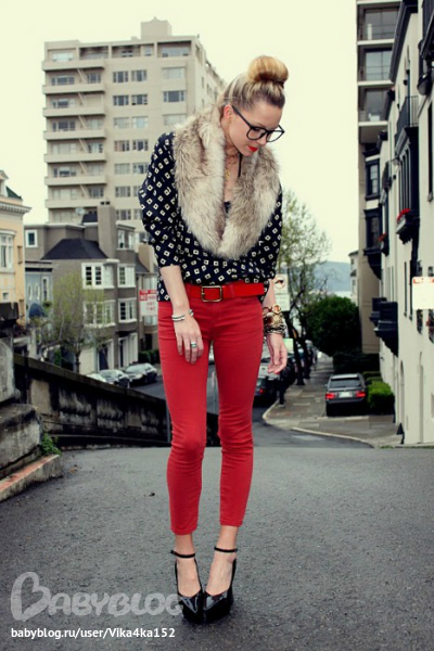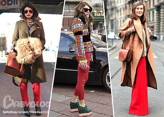 В коллекциях весна-лето 2013, дизайнеры уже предложили красный низ. так что, можете смело присоединяться к Европейской моде. Красный не собирается сдавать своих позиций. Хотя, в начале года я уже выставляла фото красных брюк в одном своем посте.