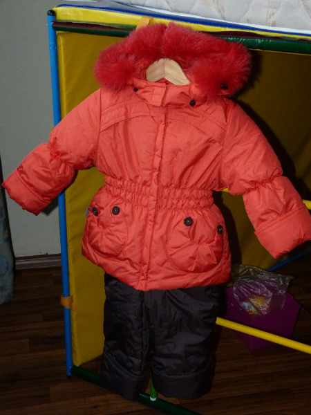 18. всё последний номер, комплект от Авроры Сашенька, р.92, также на самые холода, синтепон 300 g, есть дополнительная жилетка, типа овчинки, опушка песец, пушистая, цвет алый+шоколад, очень красивый, тоже ещё не одевали, тоже в сомнениях, шапки нет, зато реймовские краги шоколад подошли идеально)