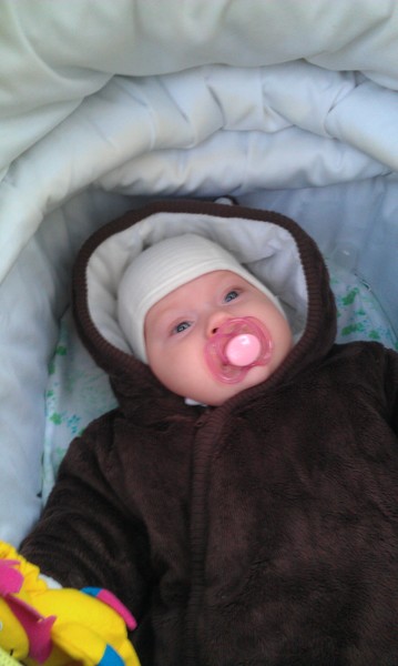 Значит так, всё начиналось очень просто с подаренного нам комбезика, сейчас даже фирму не вспомню)