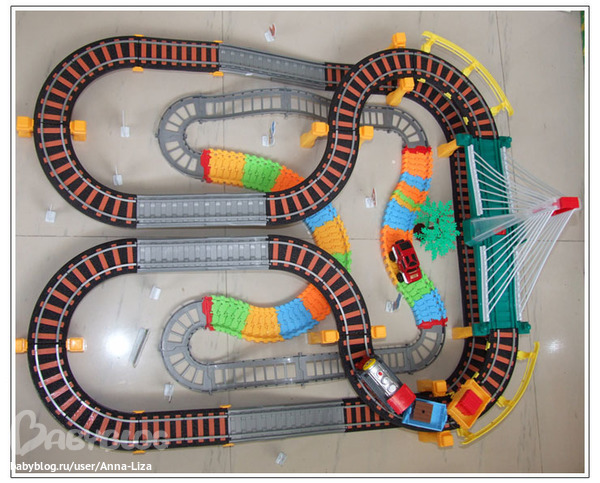 Еще была железная дорога на НГ Лизе. посредниквы кинула все коробки для уменьшения веса и объема. оставила только дно и обернула все в пупырчатую пленку. видимо,инструкция тоже была в коробке... в общем под елку в таком виде не положим. буду ждать мужчин,пусть собирают.