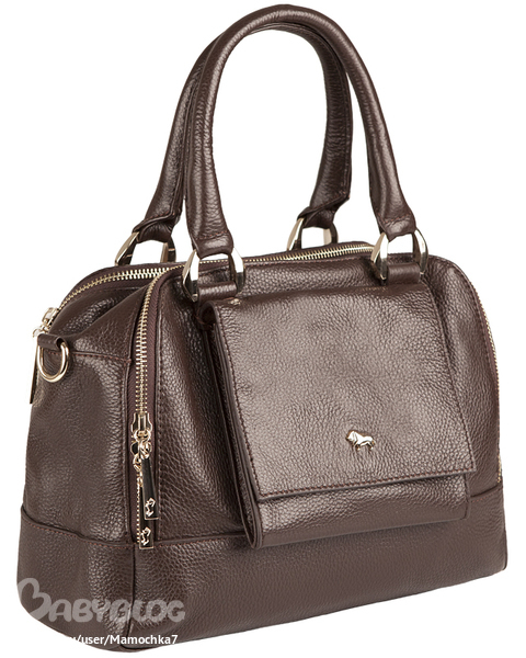Торговая марка: LABBRAСумка из натуральной кожиЦвет: коричневыйВес изделия: 915 граммРазмер 28x13x25 см   Сумка имеет два отделения, закрывающиеся на металлические молнии. В одном имеется карман на молнии, в другом - карман для мобильного телефона и открытый карман. На задней стенке есть карман на молнии. На передней - кармашек с клапаном на магнитной кнопке. Ножки на дне есть. Модель не вмещает формат A4. Сумка держит форму в наполненном состоянии. Модель имеет две ручки. Высота ручек - 14 см, что не позволят носить сумку на плече. В комплекте есть наплечный ремень. Длина наплечного ремня - 100 см.     как вам эта?