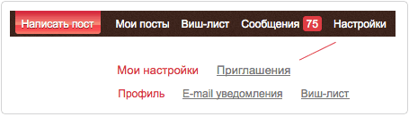 "Здравствуйте, девушки! С сегодняшнего дня, каждая из вас имеет возможность пригласить определенное количество человек зарегистрироваться на Косметисте. Количество Приглашений высчитывается автоматически, исходя из вашего рейтинга на сайте. В верхнем правом углу нажмите ссылку Настройки и вы увидите небольшое подменю под главным меню сайта. В нем появился пункт Приглашения.
