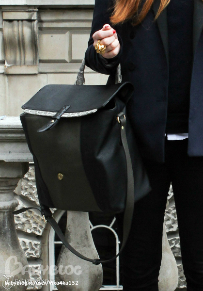 Но, Chanel не единственная марка, которая выпустила такую сумку. Сестры Олсен выпустили две линейки рюкзаков для разных потребительских рынков. Одна линия выполнена из кожи аллигатора, а вторая более бюджетная. И конечно, дизайнеры и сами ходят с этими новомодными сумками. На фото ниже Олсен с рюкзаком из кожи аллигатора.