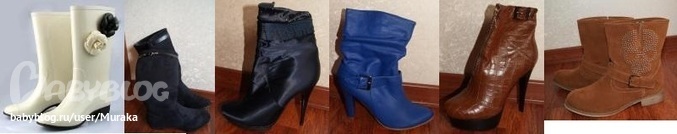 На ноги: (резиновые сапоги, черные замшевые сапоги (на холодную погоду), тканевые темно синие (но высокий каблук, не уверина что смогу гулять и думаю не уместны на площадке), темно-голубые на каблуке (думаю смогу гулять), коричневые (высокий каблук), желто-коричневые, еще есть полусапоги черные на плоской подошве.