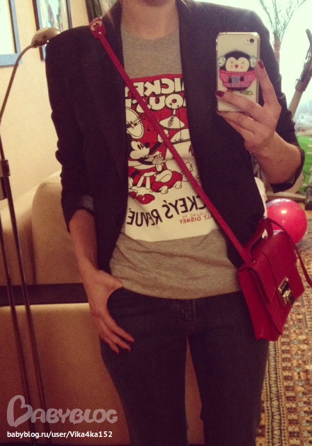 Вик а розовая сумка это Миу? И еще что за толстовка с красной юбкой?