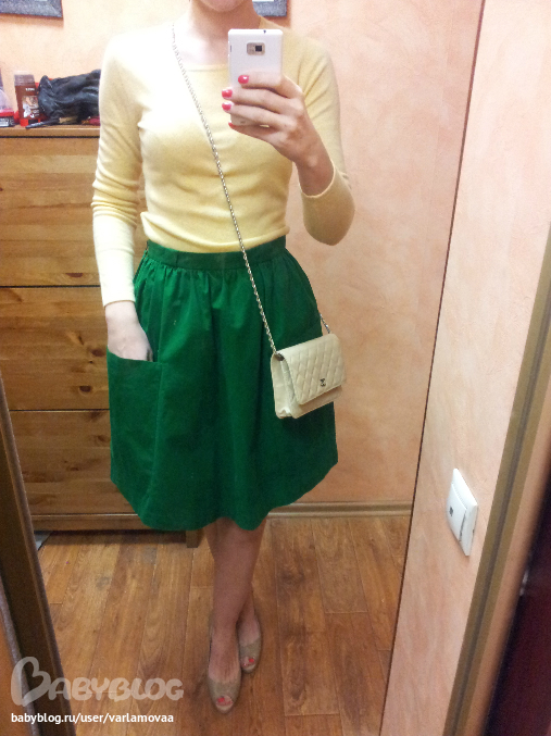 Очень расиво смотрится!! , у юбки оттенок зеленого просто незабываемый .....супер.......и крой отличный ... себе на заметку))