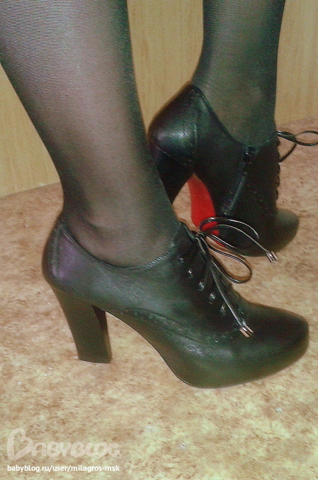 И забрала свои ботильончики, брала тут в закупке не поверите, за 700 р.!!! Кожа на коже! Каблук 9,5 см, скрытая платформа 2-2,5 см. Удобные очень! И подошва алая, красиво!!!