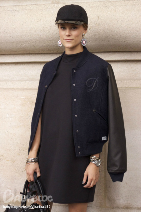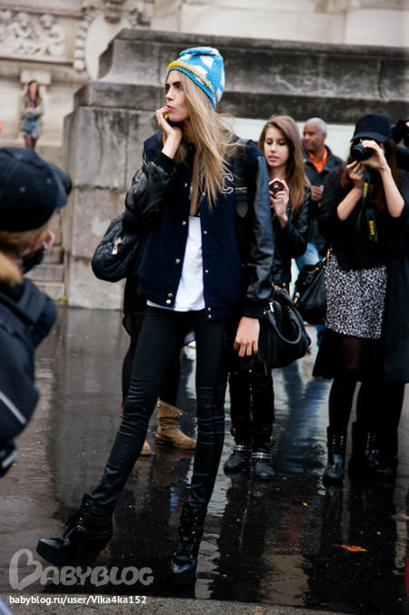 Модная мегапопулярная модель и актриса Кара Делевинь. Отличная идея, как можно носить бомбер как жакет, под кожаную куртку