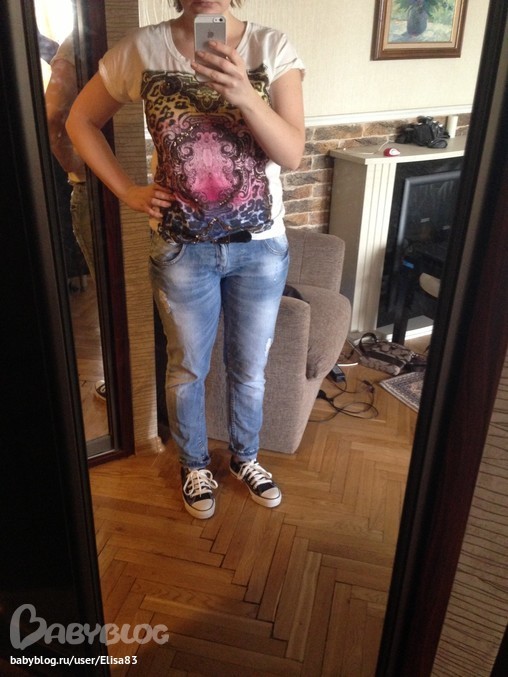 решила показать джинсы и кеды на себе. "Комплект" для прогулок с ребенком. К нему еще есть короткая черная кожаная курткая и рыжая замшевая. Пояса разных цветов есть, поэтому можно поменять. Ну как?