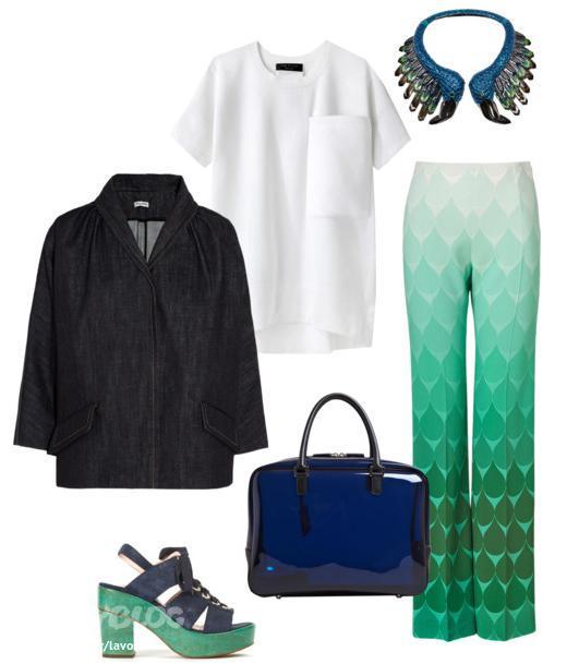 2. В этом сезоне вещи из денима приобретают классический крой и выглядят очень респектабельно. Сет я назвала "Скромный павлин".