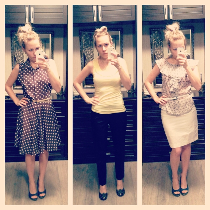 с последнего платья убрать пояс, он явно ниже талии и укорачивает ноги, ощущение такое что у Вас животик есть. А так...ну обычное платье, не на выход конечно, но сойдет.