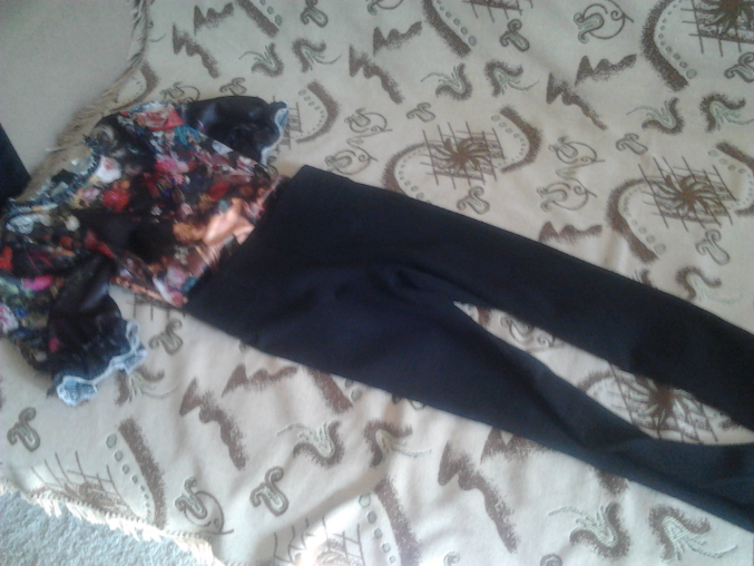 Если такая богатая расцветка,то нужен очень аскетичный низ,как в цвете,так и в форме - прямые брюки (глубокий синий или тот цвет,которого меньше всего на кофте),юбка карандаш в тех же правилах по цветам.