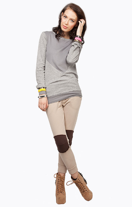 ПосоветуйтеПонравились в магазине вот такие брюки из плотного хлопка. Что-то среднее между тренировочными и стилем casual. Рассматриваю чтобы ходить гулять с ребенком. И купить под них бежевую же обувь, м.б. кеды на танкетке или ботинки. Куртка будет короткая. Ну или кофта до середины бедра, не ниже. Т.е. попа наполовину точно будет выглядывать. На коленках у них, кстати, вставки из замши.