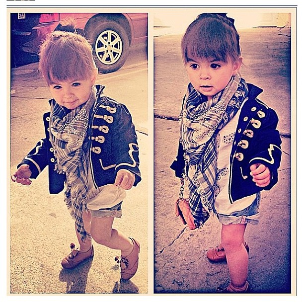 Первые два достаточно просто, если не считать огромного палантина, и очков(врятли они удобны детям, для фото-лука да) вторые две фотки хорошие очень сочетания имхо. последняя такая милая))