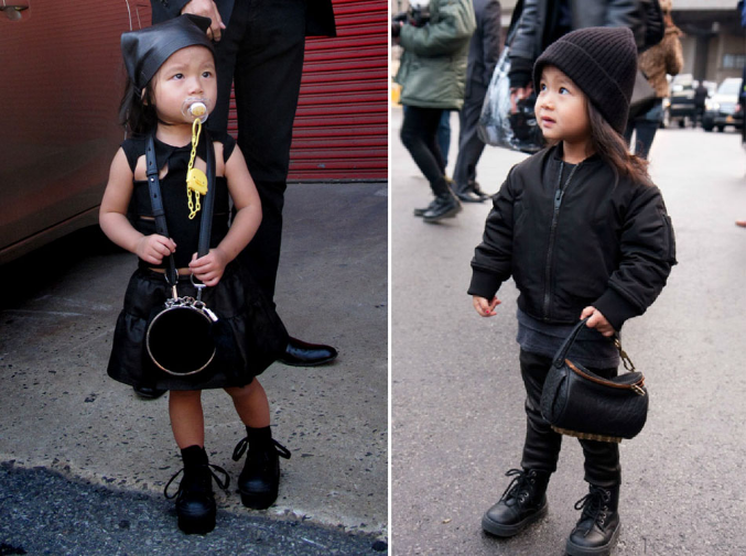 во-первых, ничего красивого не вижу - это стиль богемный, для меня ассоциируется исключительно с богатыми наркоманами и прожигателями жизни. или теми, кто под них "косит" по моему нам навязывается, что это красиво, раз так ходят "звезды". во-вторых, ребенок должен быть ребенком! зачем сразу обрекать его на мир в черно белых тонах?