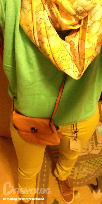 Сегодня пришла посылочка и мои первые попытки раскрасить гардероб в более яркие краски постепенно воплощаются в жизнь..., но не без промахов. Джемпер очень велик, перезаказала... Как придет - сделаю нормальное фото. А пока это выглядит так...