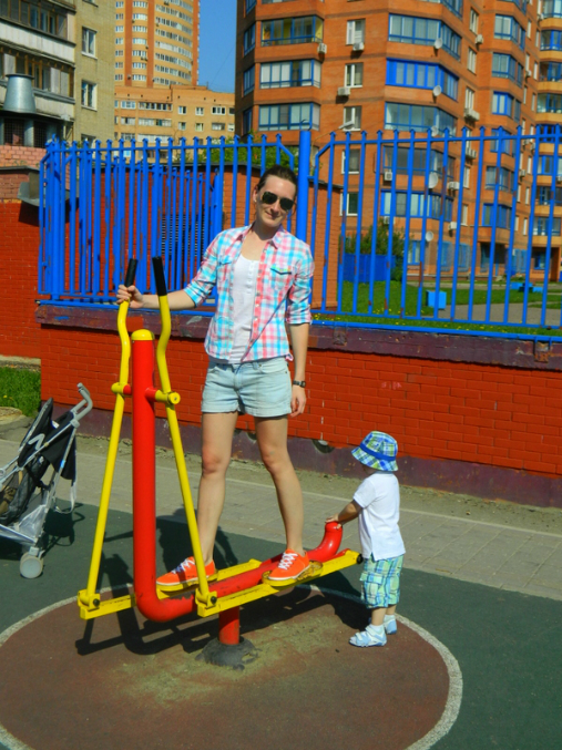 На прогулкеУстроив очередную ревизию в летних вещах, нашлись забытые шортики Levis. Куплены еще до Б после родов они мне стали велики, и я их запихнула подальше.