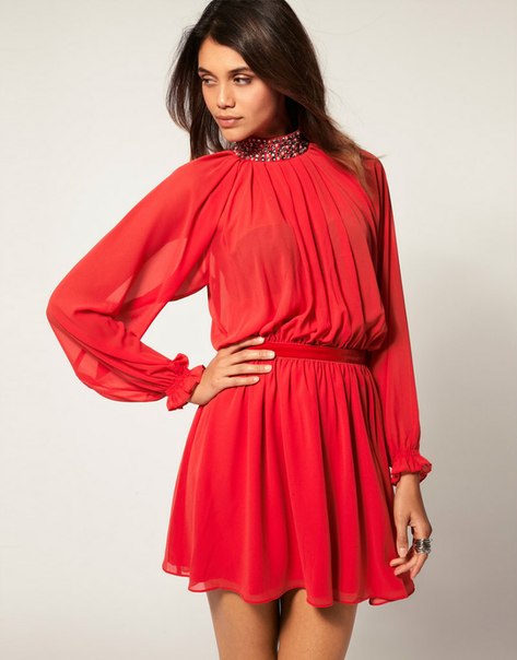 любое коктельное платье по колено и выше) а вообще одевайье то что вам идет, но не слишком будничное))))))