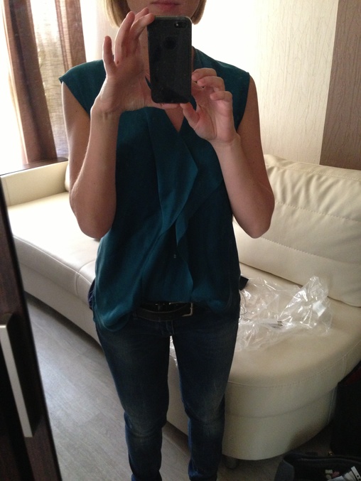 ПосоветуйтеДевушки, посоветуйте, купила я такую блузку, но вот с чем,кроме джинс ее можно надеть?Или какого цвета низ?Блузка 100% шелк.