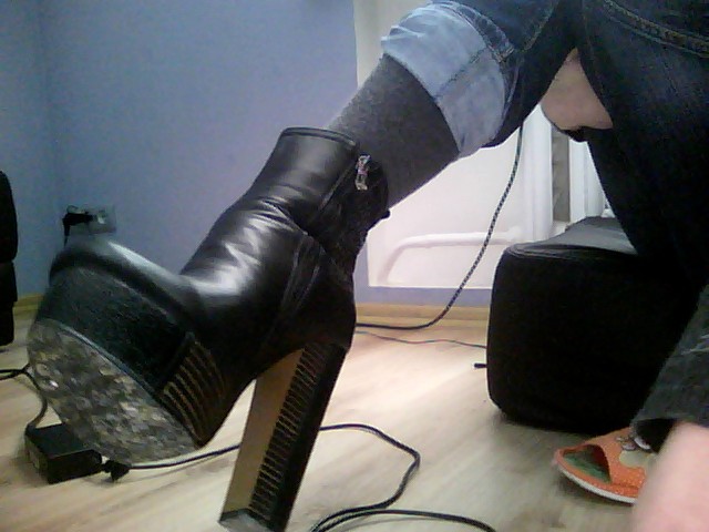 Ходить - это даваа , нужно уметь ))))))) ... Но я умею и привыкла , раньше , очень часто ходила на шпильках , и по подиуму в том числе ... У меня зимние , похожи на твои , только в замше и с овчинкой сверху ) . Каблук , правда , выше , но толстый - но ооочень удобно , подошва клёвая , устойчивая !!!