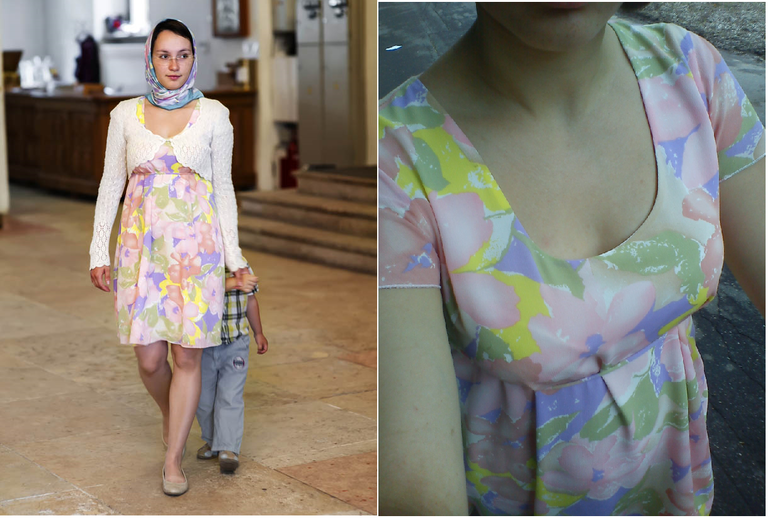 а вот мое любимое. Фирмы не знаю, французское точно. Покупалось очень давно, но замены ему нет до сих пор. ( Люблю его очень. Рукав крылышком. Свободный крой, под грудью затягивается поясок тоненький. Люблю его потому что оно 100% шелк(и верх и подклад), какой именно не знаю, он не мнется, зацепок нет. Изза покроя ношу его каждое лето (включая две беременности). В нем не жарко даже в пекло. вот кстати с первым пузиком фото