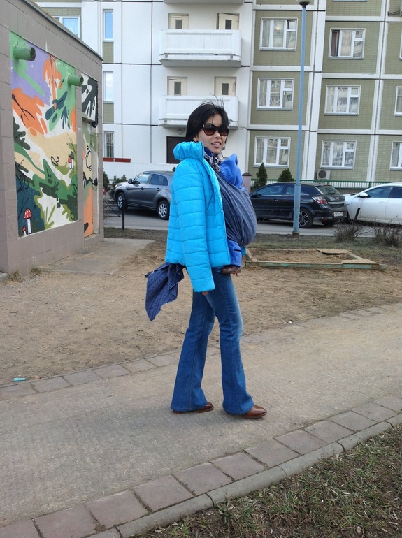 Я купила темно-синие. Очень мне нравится, как сидят, стройнят фигуру. У меня клеш от колена. Обувь на каблучке, джинсы в пол.