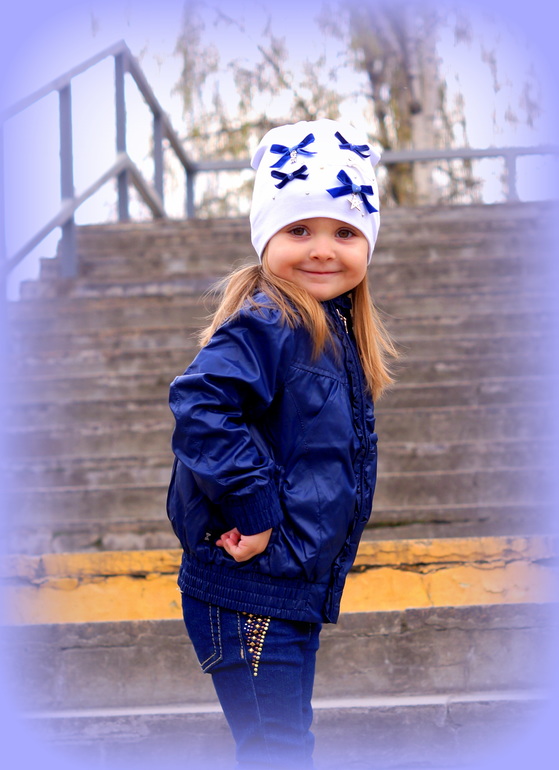 И увидел там папа себе ветровочку, а Я дочке ветровочку, ну обычную такую ветровочку, дешевенькую, правда, обалденно синюю, на Никитину цветом похожую. Но только 116 размера! А дочка-то совсем других параметров, явно малявка она еще, не доросла до 116.