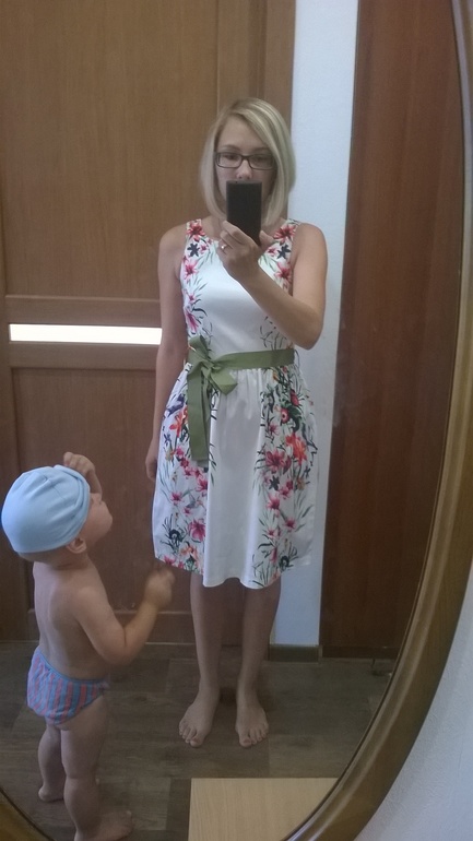 Я бы взяла туфли + серьги или колье или сумочку одного цвета- любого яркого цвета как цветы на втором платье. Оранжевые, розовые или оливкового. Платья оба на вас отлично сидят и я думаю сестра вам разрешит быть в чисто белом)Ой, такая гримаса у сына, немогу)))) типо ох уж эти бабы)))
