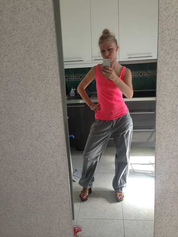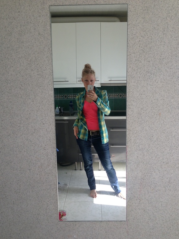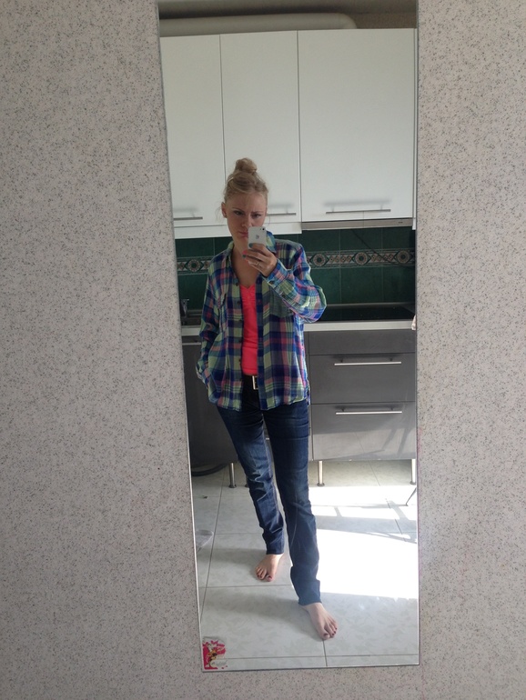 Любимые брюки с тельняшкой синей должны быть хорошо. Может с первой клетчатой рубашкой и ремнем. Мне нравятся тонкие ремни, которыми 2 раза обматываться надо.В общем, из того что здесь показала, я бы выбросила только розовую майку.Жилетку твою из прошлого поста помню. Люблю жилетки. Я бы её попыталась носить с джинсами и клетчатой рубашкой.