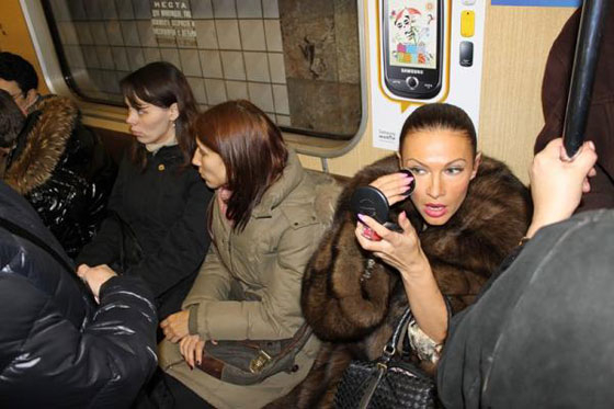 Мы видим женщин в шубах в метро, на прогулках с ребенком, в булочных, в газельках и тд
