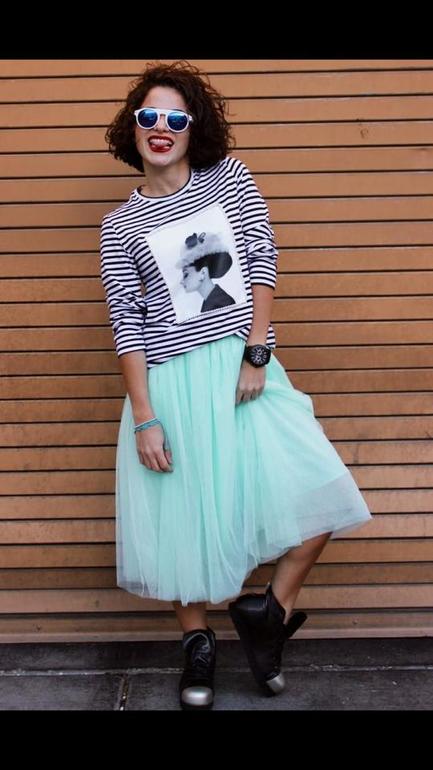 Люблю тельняшки. И они сейчас в тренде. Но любой дополнительный принт обязывает создать образ. И тут уже возникает масса проблем. Я бы такую не купила. Слишком бахматой она не очень смотрится, а если брать в размер, то грудь должна быть нулевой. Иначе пойдет искажение четких линий фото. И это будет уже выглядеть карикатурно.