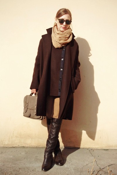 Помимо этого способа, создать вертикаль можно с помощью второго слоя одежды. Но этот вариант подходит для теплой осени, так как этот эффект достигается когда пальто или тренч просто накинуты сверху, а не застегнуты на все пуговицы. В этом случае, взгляд так же скользит по вертикали, создавая иллюзию более вытянутого силуэта.