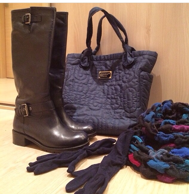 Синие сапоги Bottega и сумка Marc Jacobs