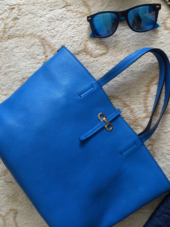 Синяя salvatore ferragano и очки ray ban. У сумки к сожалению нет молннии