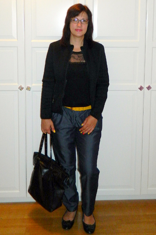 Карандаш хорошо, а вот остальные как у бабушки:(Джинсы в обтяжку, обувь — поменьше той, у которой ремешок есть — ногу укорачивают.Брюки попробуйте со стрелкой прямые.Если сверху объемный кардиган — то снизу узкие брюки/джинсы, чтобы не казаться толще.Вот в желтом мне нравится)Не старайтесь стареть раньше времени, что вы там забыли??)