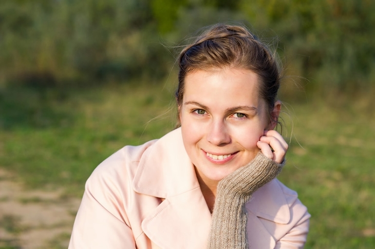 На прогулкеКогда еще было теплее, то есть на прошлой неделе, а руки уже мерзли в легком пальто с коротким рукавом, придумала как наконец начать носить связанные много лет назад свекровью митенки. И в них было действительно очень тепло и уютно.